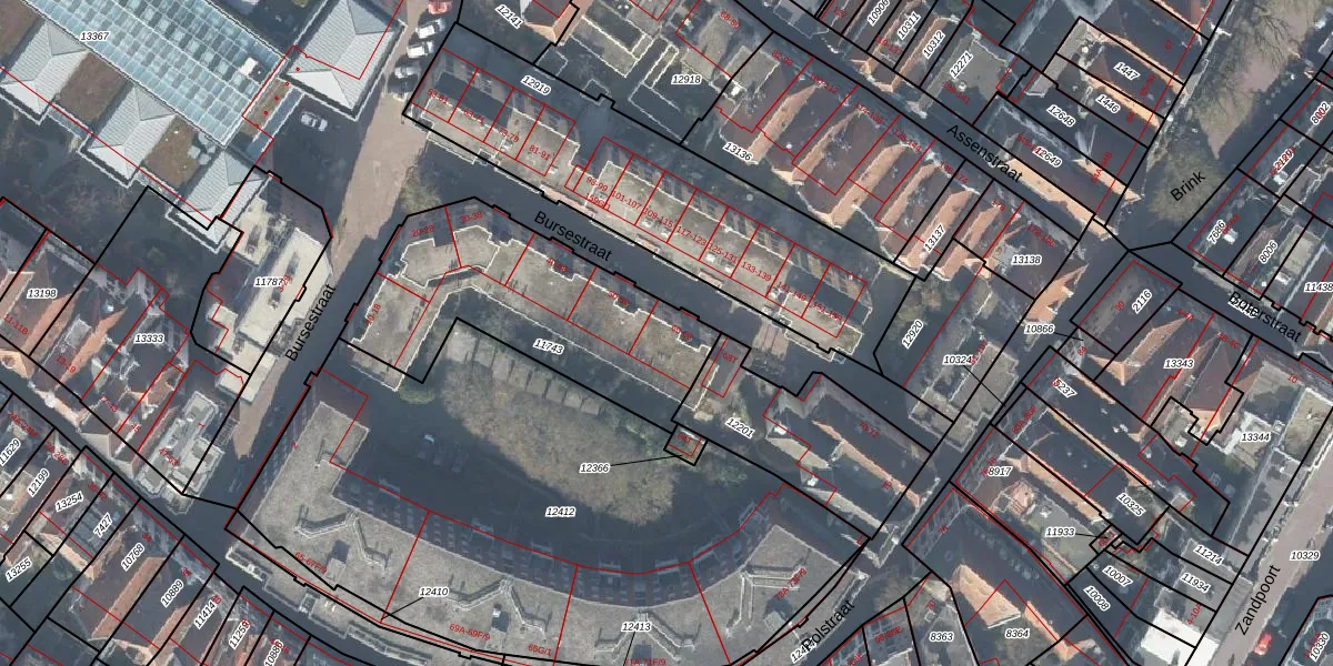 Bursestraat 62 is gelegen op kadastraal perceel DVT00E11743. Deze kadastrale aanduiding is uniek en wordt gebruikt door het Kadaster om eigendomsrechten en andere zakelijke rechten vast te leggen. Het perceel maakt onderdeel uit van de kadastrale gemeente Deventer.