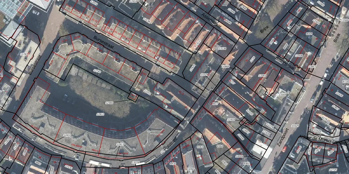 Bursestraat 72 is gelegen op kadastraal perceel DVT00E12201. Deze kadastrale aanduiding is uniek en wordt gebruikt door het Kadaster om eigendomsrechten en andere zakelijke rechten vast te leggen. Het perceel maakt onderdeel uit van de kadastrale gemeente Deventer.