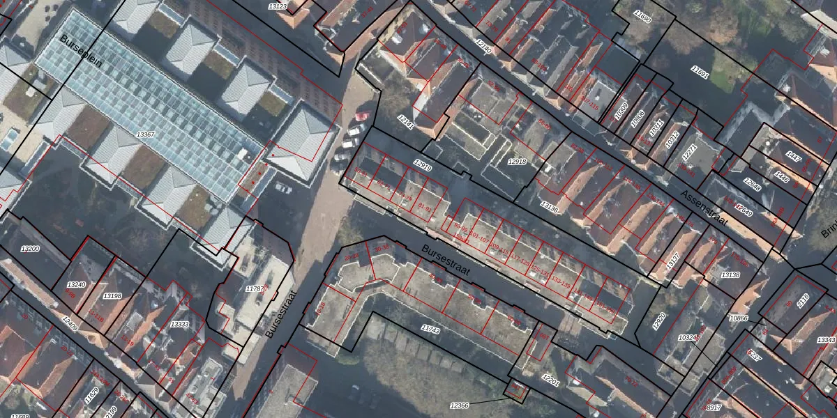 Het perceel waarop Bursestraat 81 staat heeft een oppervlakte van 1250 m². Dit is een zeer groot perceel. De perceeloppervlakte wordt geregistreerd door het Kadaster. Gedetailleerde informatie over de maten van dit perceel kunt u vinden in het rapport Kadastrale kaart met maatvoering van Bursestraat 81.