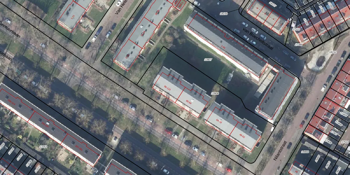 Het perceel waarop Ceintuurbaan 100 staat heeft een oppervlakte van 2162 m². Dit is een zeer groot perceel. De perceeloppervlakte wordt geregistreerd door het Kadaster. Gedetailleerde informatie over de maten van dit perceel kunt u vinden in het rapport Kadastrale kaart met maatvoering van Ceintuurbaan 100.