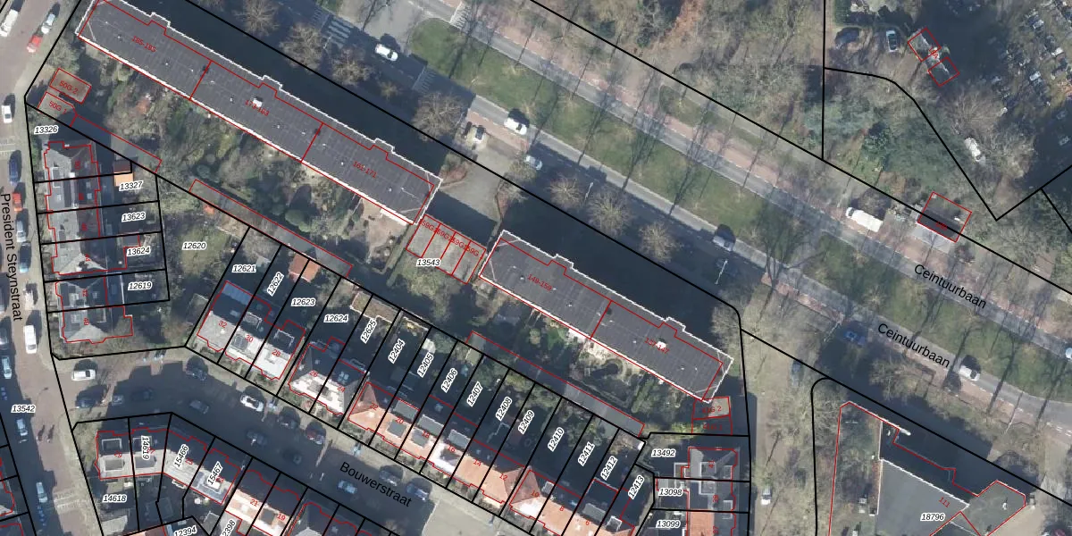 Het perceel waarop Ceintuurbaan 159 staat heeft een oppervlakte van 4336 m². Dit is een zeer groot perceel. De perceeloppervlakte wordt geregistreerd door het Kadaster. Gedetailleerde informatie over de maten van dit perceel kunt u vinden in het rapport Kadastrale kaart met maatvoering van Ceintuurbaan 159.