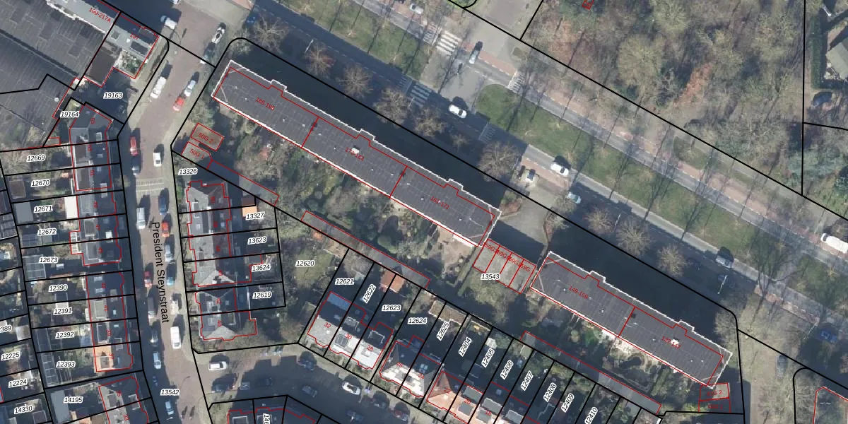 Het perceel waarop Ceintuurbaan 167 staat heeft een oppervlakte van 4336 m². Dit is een zeer groot perceel. De perceeloppervlakte wordt geregistreerd door het Kadaster. Gedetailleerde informatie over de maten van dit perceel kunt u vinden in het rapport Kadastrale kaart met maatvoering van Ceintuurbaan 167.