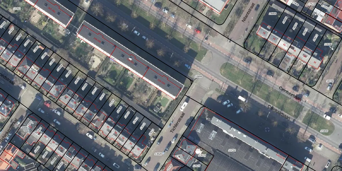 Het perceel waarop Ceintuurbaan 219 staat heeft een oppervlakte van 6890 m². Dit is een zeer groot perceel. De perceeloppervlakte wordt geregistreerd door het Kadaster. Gedetailleerde informatie over de maten van dit perceel kunt u vinden in het rapport Kadastrale kaart met maatvoering van Ceintuurbaan 219.
