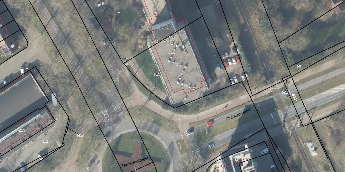 Het perceel waarop Ceintuurbaan 222 staat heeft een oppervlakte van 1845 m². Dit is een zeer groot perceel. De perceeloppervlakte wordt geregistreerd door het Kadaster. Gedetailleerde informatie over de maten van dit perceel kunt u vinden in het rapport Kadastrale kaart met maatvoering van Ceintuurbaan 222.
