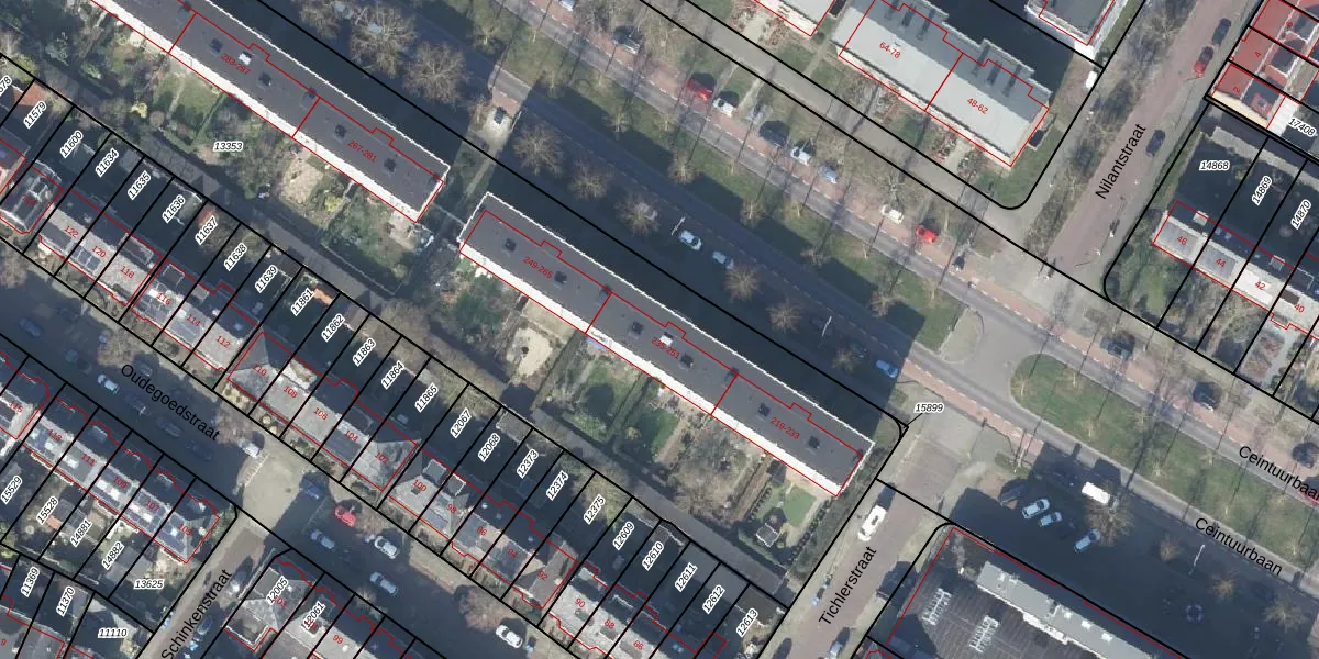 Het perceel waarop Ceintuurbaan 251 staat heeft een oppervlakte van 6890 m². Dit is een zeer groot perceel. De perceeloppervlakte wordt geregistreerd door het Kadaster. Gedetailleerde informatie over de maten van dit perceel kunt u vinden in het rapport Kadastrale kaart met maatvoering van Ceintuurbaan 251.