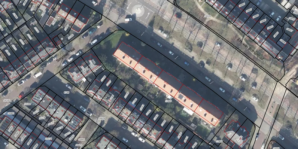 Het perceel waarop Ceintuurbaan 53 staat heeft een oppervlakte van 2909 m². Dit is een zeer groot perceel. De perceeloppervlakte wordt geregistreerd door het Kadaster. Gedetailleerde informatie over de maten van dit perceel kunt u vinden in het rapport Kadastrale kaart met maatvoering van Ceintuurbaan 53.