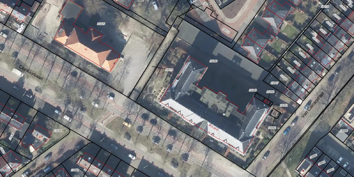 Het perceel waarop Ceintuurbaan 8-F-4 staat heeft een oppervlakte van 3960 m². Dit is een zeer groot perceel. De perceeloppervlakte wordt geregistreerd door het Kadaster. Gedetailleerde informatie over de maten van dit perceel kunt u vinden in het rapport Kadastrale kaart met maatvoering van Ceintuurbaan 8-F-4.