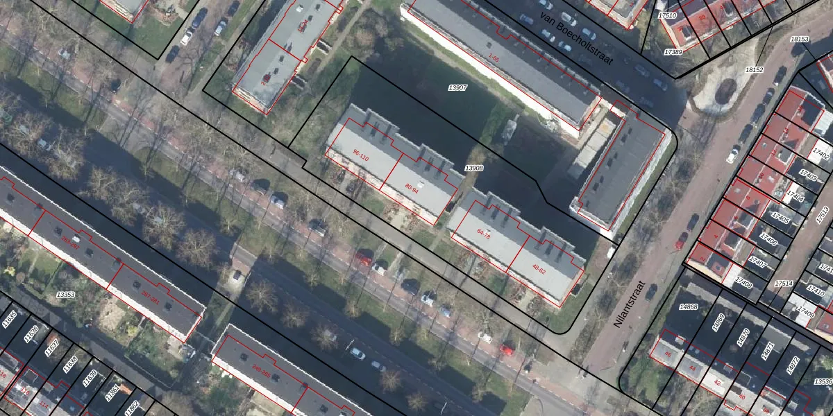 Het perceel waarop Ceintuurbaan 80 staat heeft een oppervlakte van 2162 m². Dit is een zeer groot perceel. De perceeloppervlakte wordt geregistreerd door het Kadaster. Gedetailleerde informatie over de maten van dit perceel kunt u vinden in het rapport Kadastrale kaart met maatvoering van Ceintuurbaan 80.