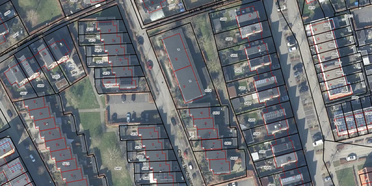 Het perceel waarop Charles Rochussenstraat 16-D staat heeft een oppervlakte van 1045 m². Dit is een zeer groot perceel. De perceeloppervlakte wordt geregistreerd door het Kadaster. Gedetailleerde informatie over de maten van dit perceel kunt u vinden in het rapport Kadastrale kaart met maatvoering van Charles Rochussenstraat 16-D.