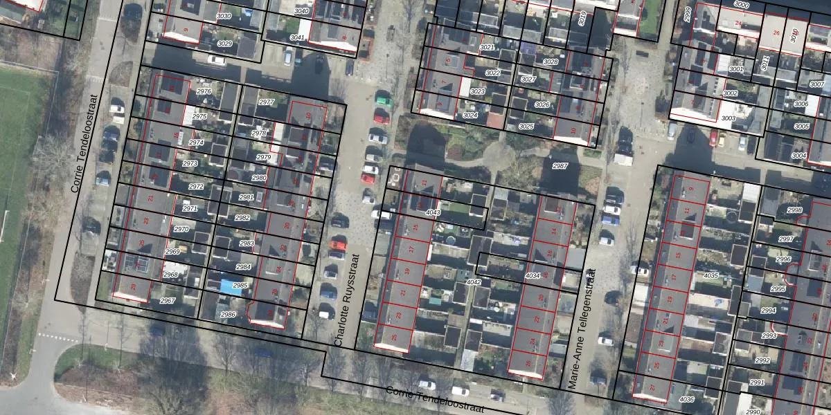 Het perceel waarop Charlotte Ruysstraat 13 staat heeft een oppervlakte van 136 m². Dit is een middelgroot perceel. De perceeloppervlakte wordt geregistreerd door het Kadaster. Gedetailleerde informatie over de maten van dit perceel kunt u vinden in het rapport Kadastrale kaart met maatvoering van Charlotte Ruysstraat 13.