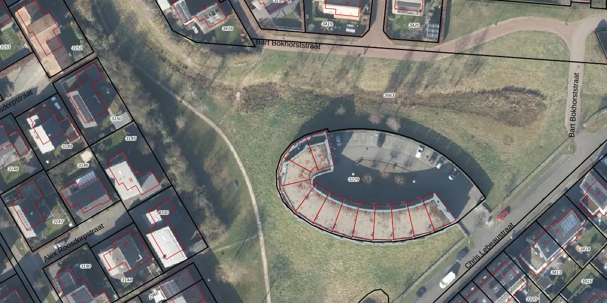 Het perceel waarop Chris Lebeaustraat 21 staat heeft een oppervlakte van 1910 m². Dit is een zeer groot perceel. De perceeloppervlakte wordt geregistreerd door het Kadaster. Gedetailleerde informatie over de maten van dit perceel kunt u vinden in het rapport Kadastrale kaart met maatvoering van Chris Lebeaustraat 21.