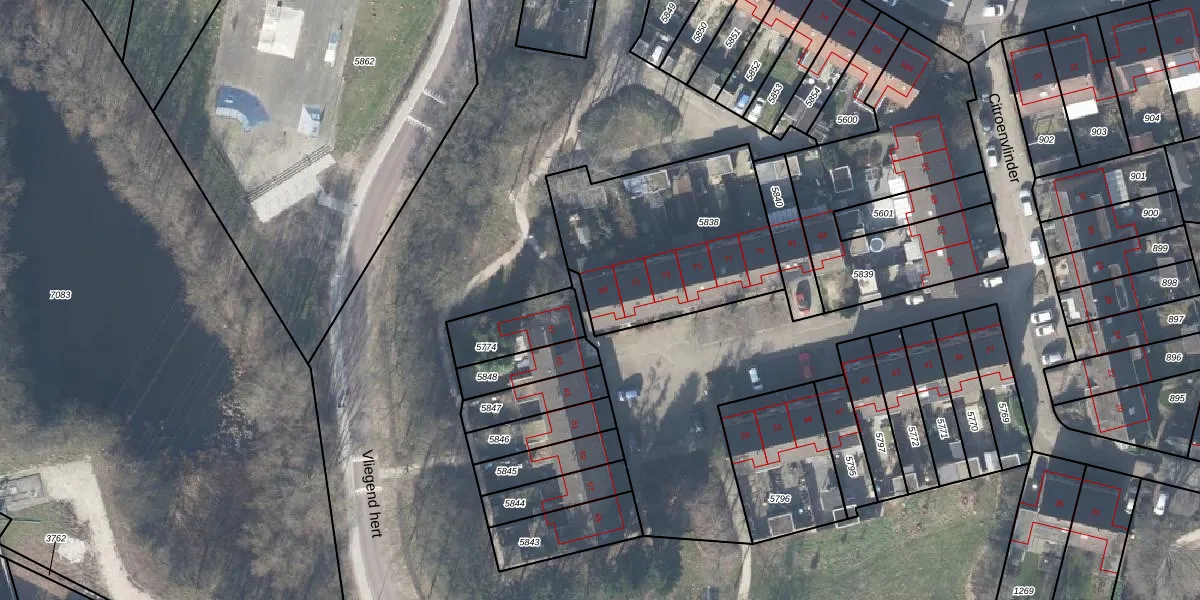 Het perceel waarop Citroenvlinder 69 staat heeft een oppervlakte van 853 m². Dit is een groot perceel. De perceeloppervlakte wordt geregistreerd door het Kadaster. Gedetailleerde informatie over de maten van dit perceel kunt u vinden in het rapport Kadastrale kaart met maatvoering van Citroenvlinder 69.