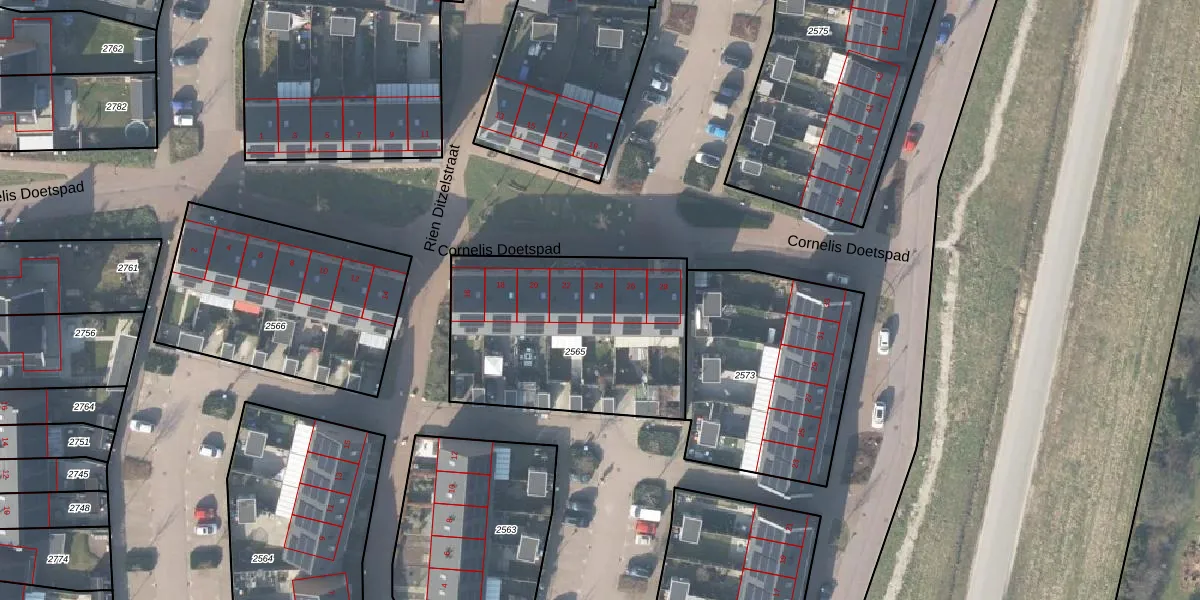 Cornelis Doetspad 24 is gelegen op kadastraal perceel DPV00B2565. Deze kadastrale aanduiding is uniek en wordt gebruikt door het Kadaster om eigendomsrechten en andere zakelijke rechten vast te leggen. Het perceel maakt onderdeel uit van de kadastrale gemeente Diepenveen.
