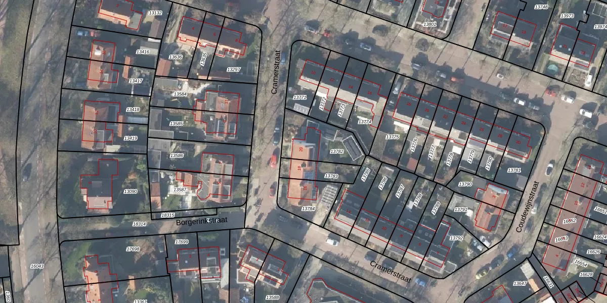 Cramerstraat 20 is gelegen op kadastraal perceel DVT00B13782. Deze kadastrale aanduiding is uniek en wordt gebruikt door het Kadaster om eigendomsrechten en andere zakelijke rechten vast te leggen. Het perceel maakt onderdeel uit van de kadastrale gemeente Deventer.