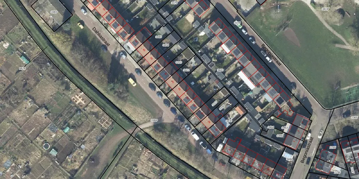Het perceel waarop Dahliastraat 40 staat heeft een oppervlakte van 6405 m². Dit is een zeer groot perceel. De perceeloppervlakte wordt geregistreerd door het Kadaster. Gedetailleerde informatie over de maten van dit perceel kunt u vinden in het rapport Kadastrale kaart met maatvoering van Dahliastraat 40.