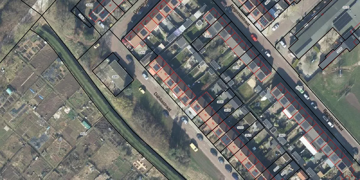 Het perceel waarop Dahliastraat 48 staat heeft een oppervlakte van 6405 m². Dit is een zeer groot perceel. De perceeloppervlakte wordt geregistreerd door het Kadaster. Gedetailleerde informatie over de maten van dit perceel kunt u vinden in het rapport Kadastrale kaart met maatvoering van Dahliastraat 48.