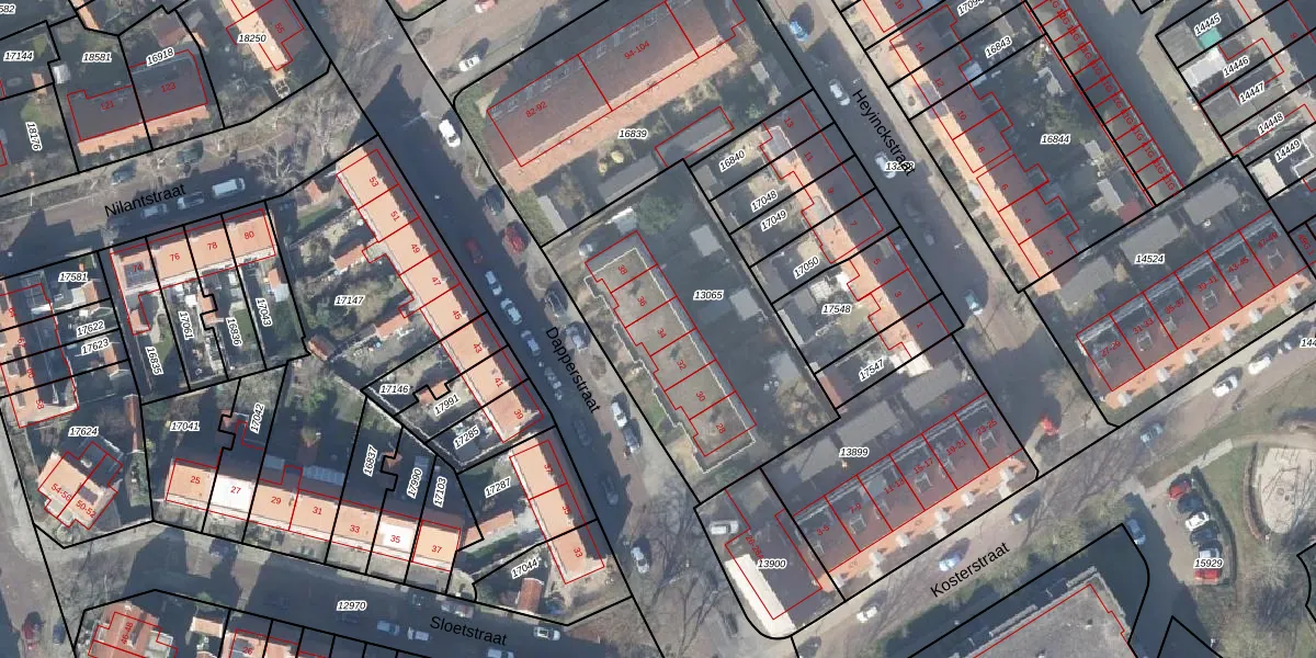 Het perceel waarop Dapperstraat 34 staat heeft een oppervlakte van 1175 m². Dit is een zeer groot perceel. De perceeloppervlakte wordt geregistreerd door het Kadaster. Gedetailleerde informatie over de maten van dit perceel kunt u vinden in het rapport Kadastrale kaart met maatvoering van Dapperstraat 34.