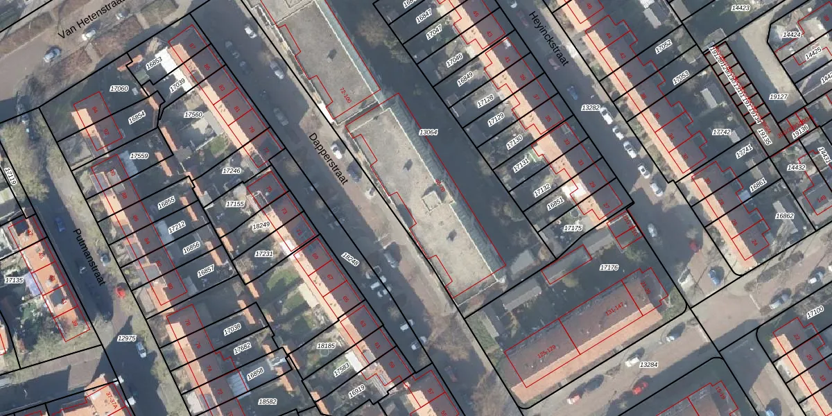 Het perceel waarop Dapperstraat 52 staat heeft een oppervlakte van 3212 m². Dit is een zeer groot perceel. De perceeloppervlakte wordt geregistreerd door het Kadaster. Gedetailleerde informatie over de maten van dit perceel kunt u vinden in het rapport Kadastrale kaart met maatvoering van Dapperstraat 52.