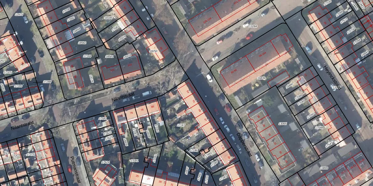 Het perceel waarop Dapperstraat 53 staat heeft een oppervlakte van 1131 m². Dit is een zeer groot perceel. De perceeloppervlakte wordt geregistreerd door het Kadaster. Gedetailleerde informatie over de maten van dit perceel kunt u vinden in het rapport Kadastrale kaart met maatvoering van Dapperstraat 53.
