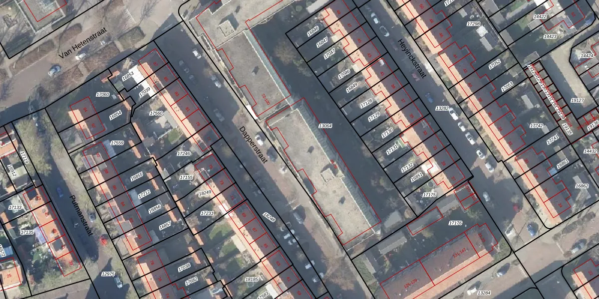 Het perceel waarop Dapperstraat 60 staat heeft een oppervlakte van 3212 m². Dit is een zeer groot perceel. De perceeloppervlakte wordt geregistreerd door het Kadaster. Gedetailleerde informatie over de maten van dit perceel kunt u vinden in het rapport Kadastrale kaart met maatvoering van Dapperstraat 60.