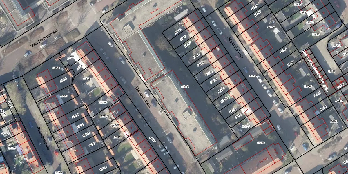 Het perceel waarop Dapperstraat 66 staat heeft een oppervlakte van 3212 m². Dit is een zeer groot perceel. De perceeloppervlakte wordt geregistreerd door het Kadaster. Gedetailleerde informatie over de maten van dit perceel kunt u vinden in het rapport Kadastrale kaart met maatvoering van Dapperstraat 66.