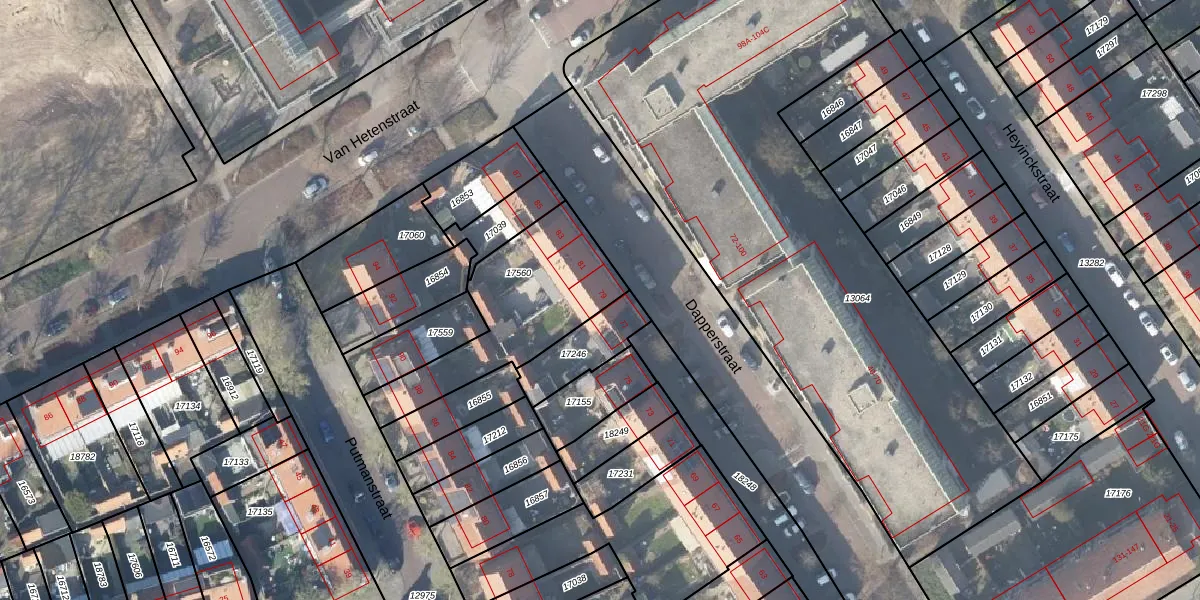 Het perceel waarop Dapperstraat 79 staat heeft een oppervlakte van 563 m². Dit is een groot perceel. De perceeloppervlakte wordt geregistreerd door het Kadaster. Gedetailleerde informatie over de maten van dit perceel kunt u vinden in het rapport Kadastrale kaart met maatvoering van Dapperstraat 79.