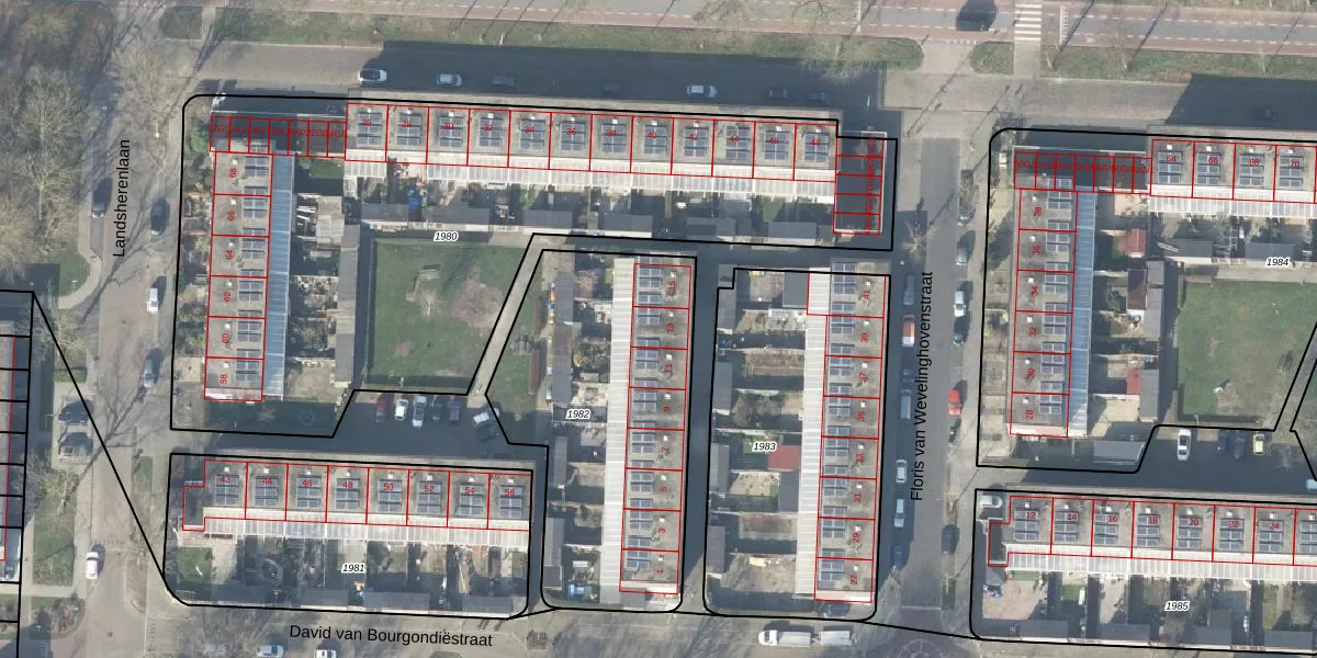 Het perceel waarop David van Bourgondiëstraat 13 staat heeft een oppervlakte van 1350 m². Dit is een zeer groot perceel. De perceeloppervlakte wordt geregistreerd door het Kadaster. Gedetailleerde informatie over de maten van dit perceel kunt u vinden in het rapport Kadastrale kaart met maatvoering van David van Bourgondiëstraat 13.