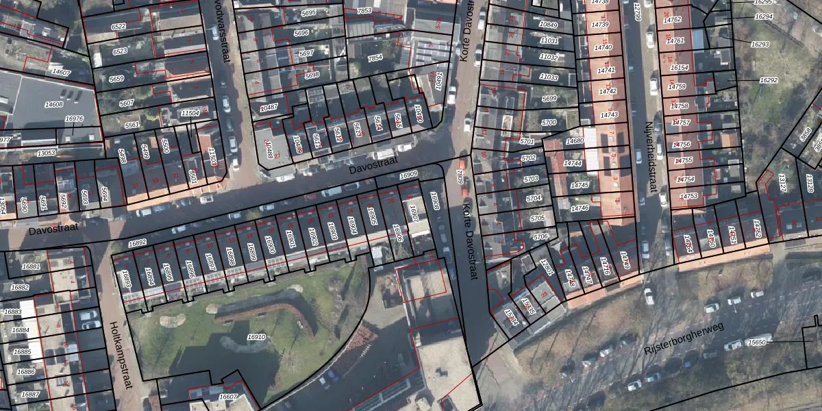 Het perceel waarop Davostraat 30 staat heeft een oppervlakte van 95 m². Dit is een klein perceel. De perceeloppervlakte wordt geregistreerd door het Kadaster. Gedetailleerde informatie over de maten van dit perceel kunt u vinden in het rapport Kadastrale kaart met maatvoering van Davostraat 30.