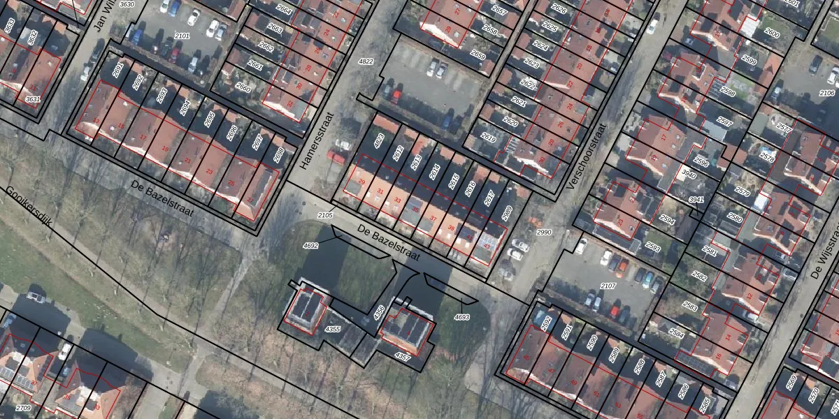 Gebruik de zoekbalk of klik op een perceel voor informatie over de adressen binnen dit perceel.