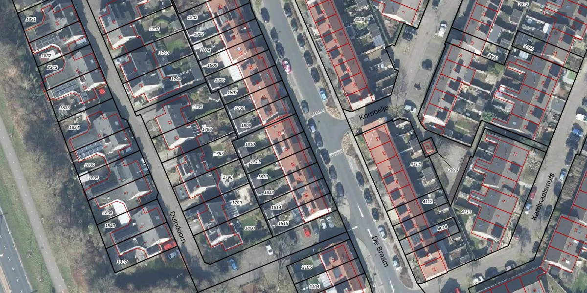 Gebruik de zoekbalk of klik op een perceel voor informatie over de adressen binnen dit perceel.