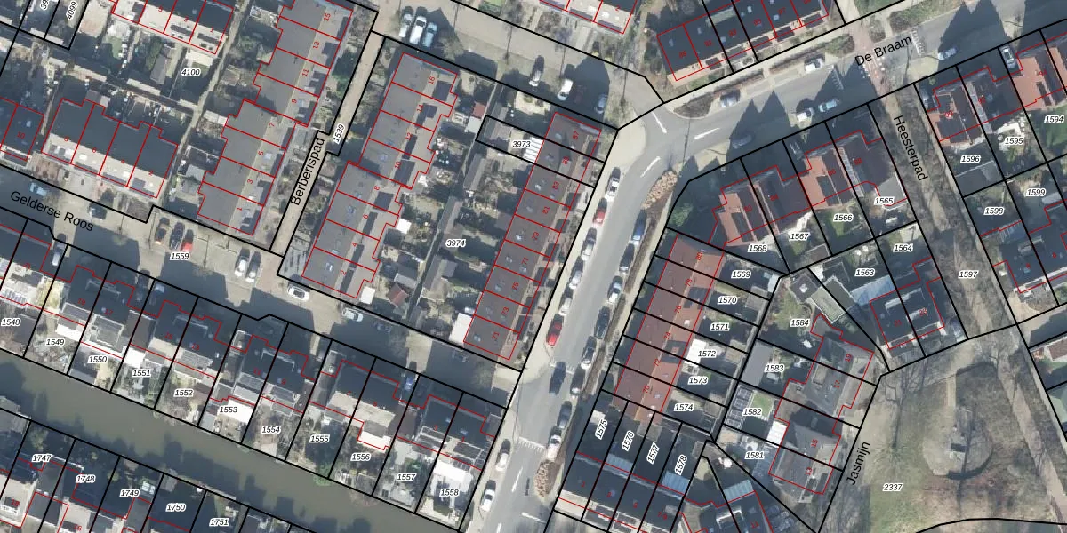 Het perceel waarop De Braam 77 staat heeft een oppervlakte van 2235 m². Dit is een zeer groot perceel. De perceeloppervlakte wordt geregistreerd door het Kadaster. Gedetailleerde informatie over de maten van dit perceel kunt u vinden in het rapport Kadastrale kaart met maatvoering van De Braam 77.
