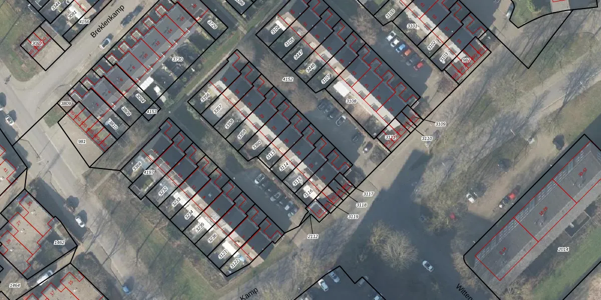 Gebruik de zoekbalk of klik op een perceel voor informatie over de adressen binnen dit perceel.