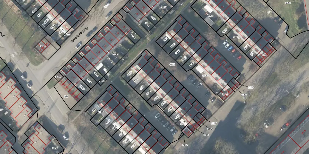 Gebruik de zoekbalk of klik op een perceel voor informatie over de adressen binnen dit perceel.