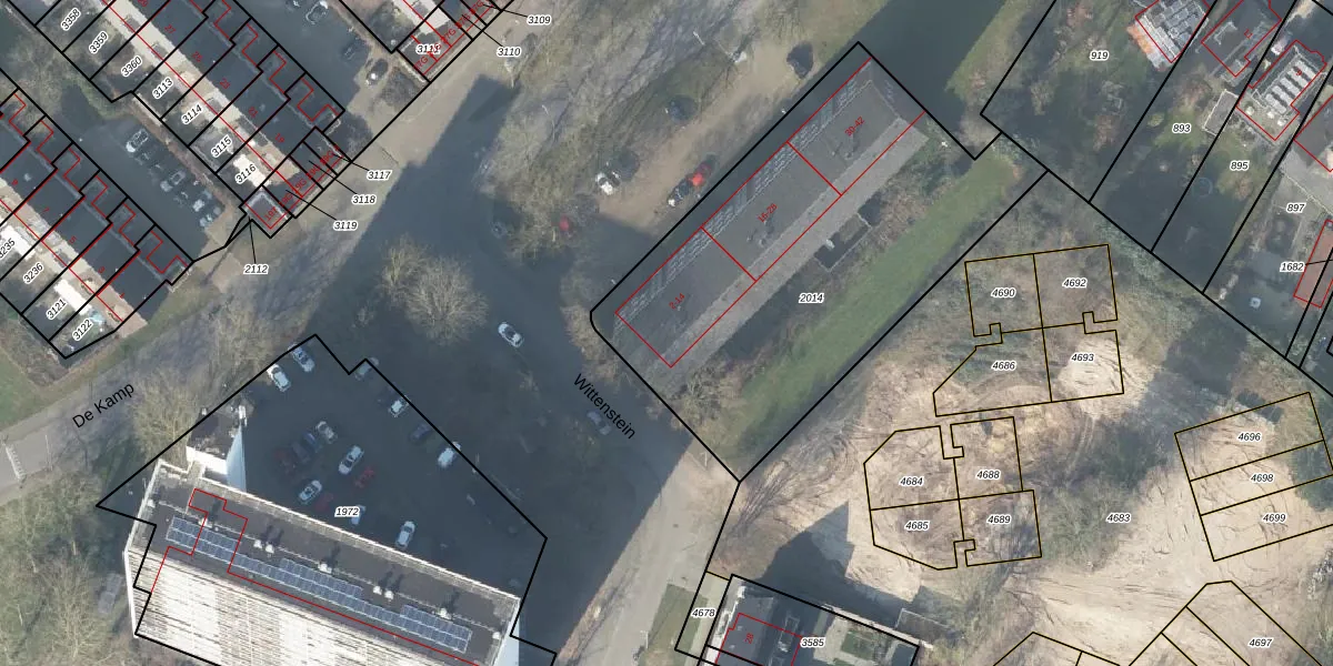 Het perceel waarop De Kamp 4 staat heeft een oppervlakte van 2044 m². Dit is een zeer groot perceel. De perceeloppervlakte wordt geregistreerd door het Kadaster. Gedetailleerde informatie over de maten van dit perceel kunt u vinden in het rapport Kadastrale kaart met maatvoering van De Kamp 4.