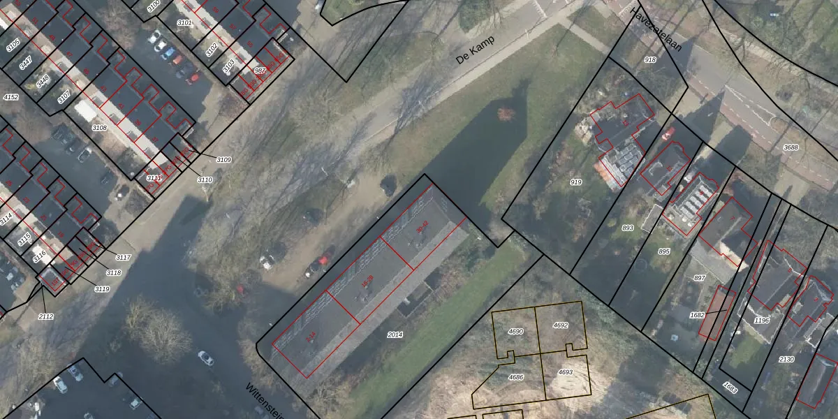 Het perceel waarop De Kamp 42 staat heeft een oppervlakte van 2044 m². Dit is een zeer groot perceel. De perceeloppervlakte wordt geregistreerd door het Kadaster. Gedetailleerde informatie over de maten van dit perceel kunt u vinden in het rapport Kadastrale kaart met maatvoering van De Kamp 42.