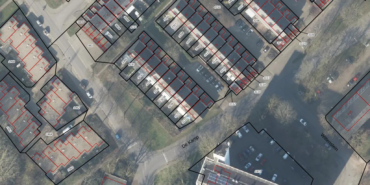 Gebruik de zoekbalk of klik op een perceel voor informatie over de adressen binnen dit perceel.