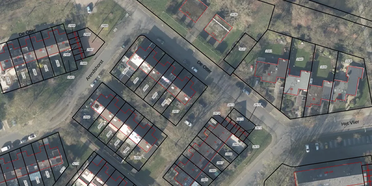 Gebruik de zoekbalk of klik op een perceel voor informatie over de adressen binnen dit perceel.
