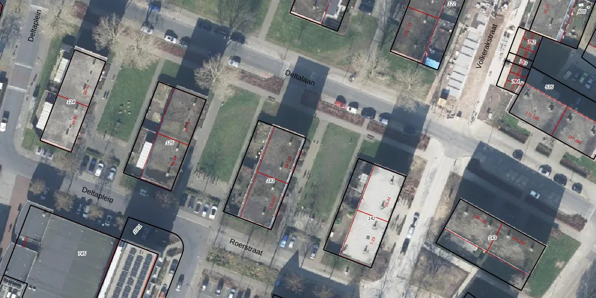 Het perceel waarop Deltalaan 98 staat heeft een oppervlakte van 557 m². Dit is een groot perceel. De perceeloppervlakte wordt geregistreerd door het Kadaster. Gedetailleerde informatie over de maten van dit perceel kunt u vinden in het rapport Kadastrale kaart met maatvoering van Deltalaan 98.