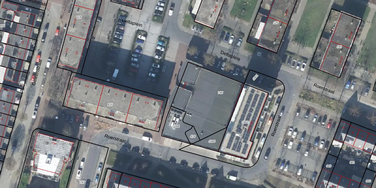 Het perceel waarop Deltaplein 15 staat heeft een oppervlakte van 952 m². Dit is een groot perceel. De perceeloppervlakte wordt geregistreerd door het Kadaster. Gedetailleerde informatie over de maten van dit perceel kunt u vinden in het rapport Kadastrale kaart met maatvoering van Deltaplein 15.