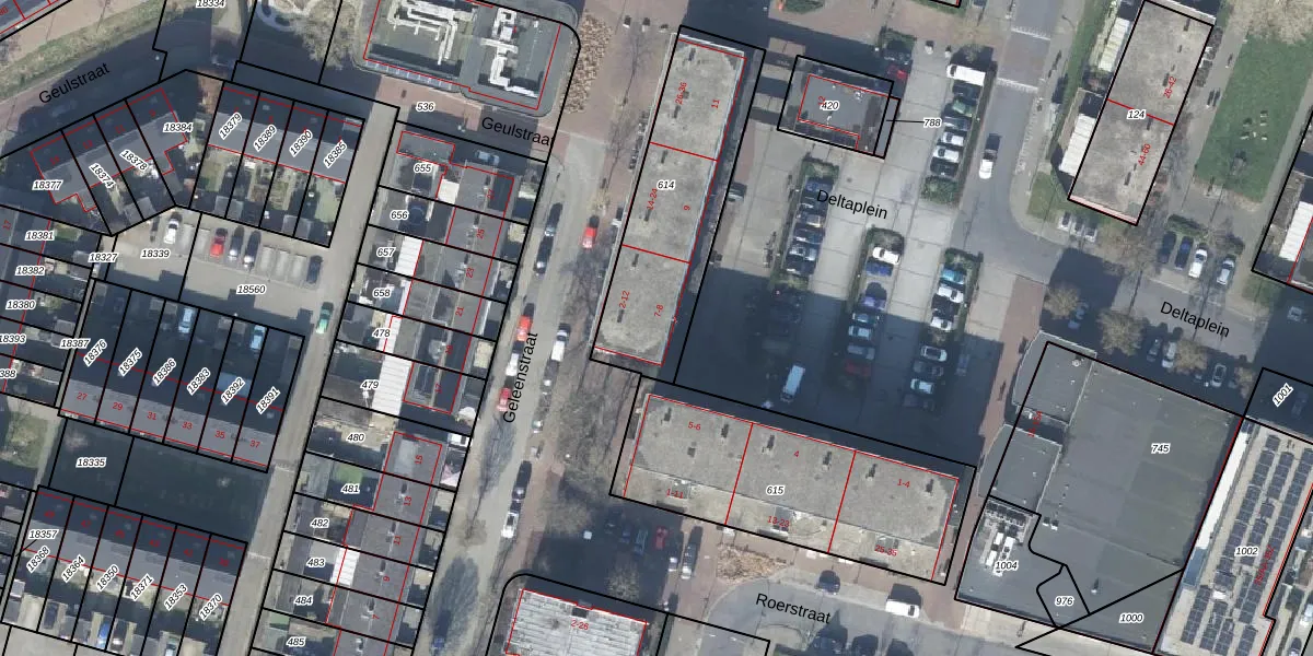 Het perceel waarop Deltaplein 7 staat heeft een oppervlakte van 713 m². Dit is een groot perceel. De perceeloppervlakte wordt geregistreerd door het Kadaster. Gedetailleerde informatie over de maten van dit perceel kunt u vinden in het rapport Kadastrale kaart met maatvoering van Deltaplein 7.