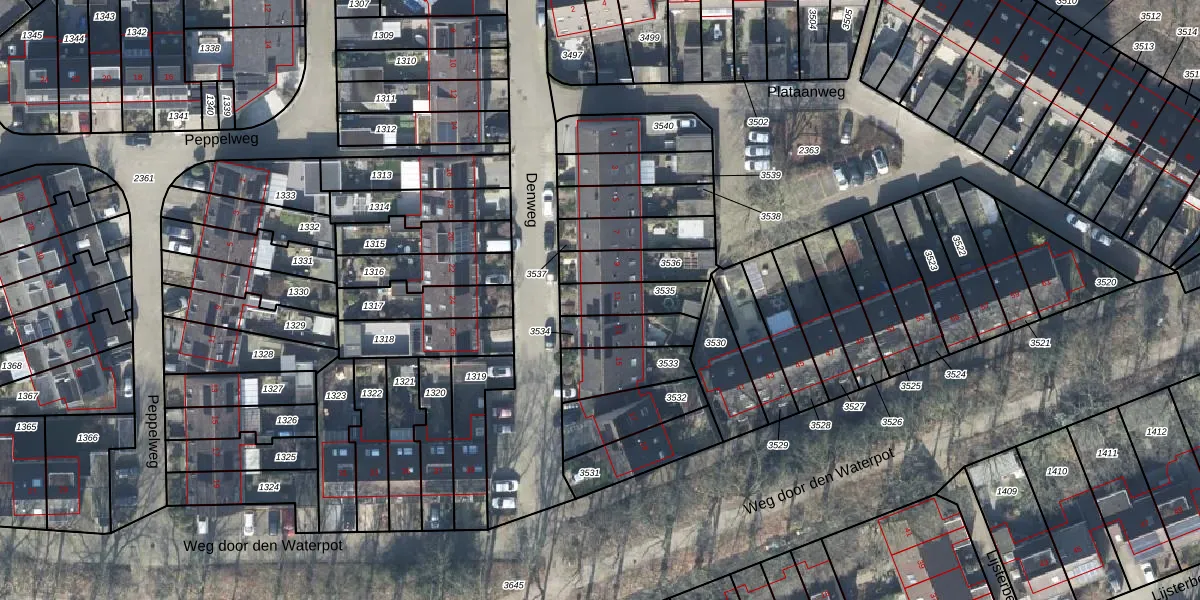 Gebruik de zoekbalk of klik op een perceel voor informatie over de adressen binnen dit perceel.