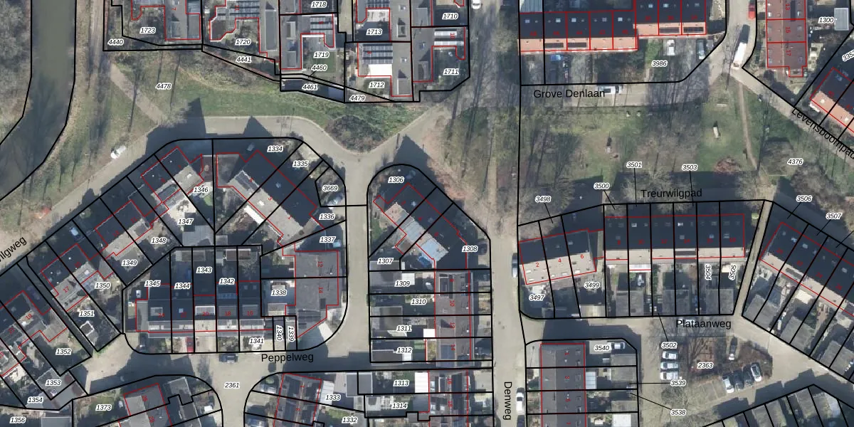 Gebruik de zoekbalk of klik op een perceel voor informatie over de adressen binnen dit perceel.