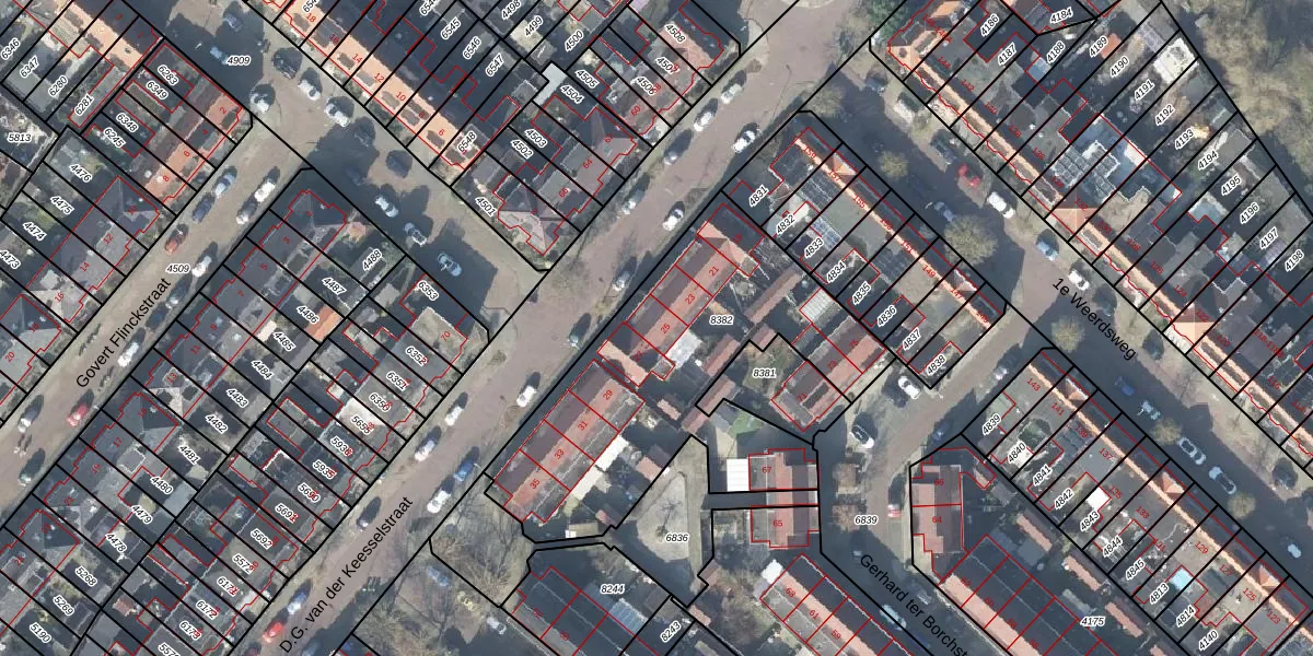 Het perceel waarop D.G. van der Keesselstraat 25 staat heeft een oppervlakte van 1470 m². Dit is een zeer groot perceel. De perceeloppervlakte wordt geregistreerd door het Kadaster. Gedetailleerde informatie over de maten van dit perceel kunt u vinden in het rapport Kadastrale kaart met maatvoering van D.G. van der Keesselstraat 25.