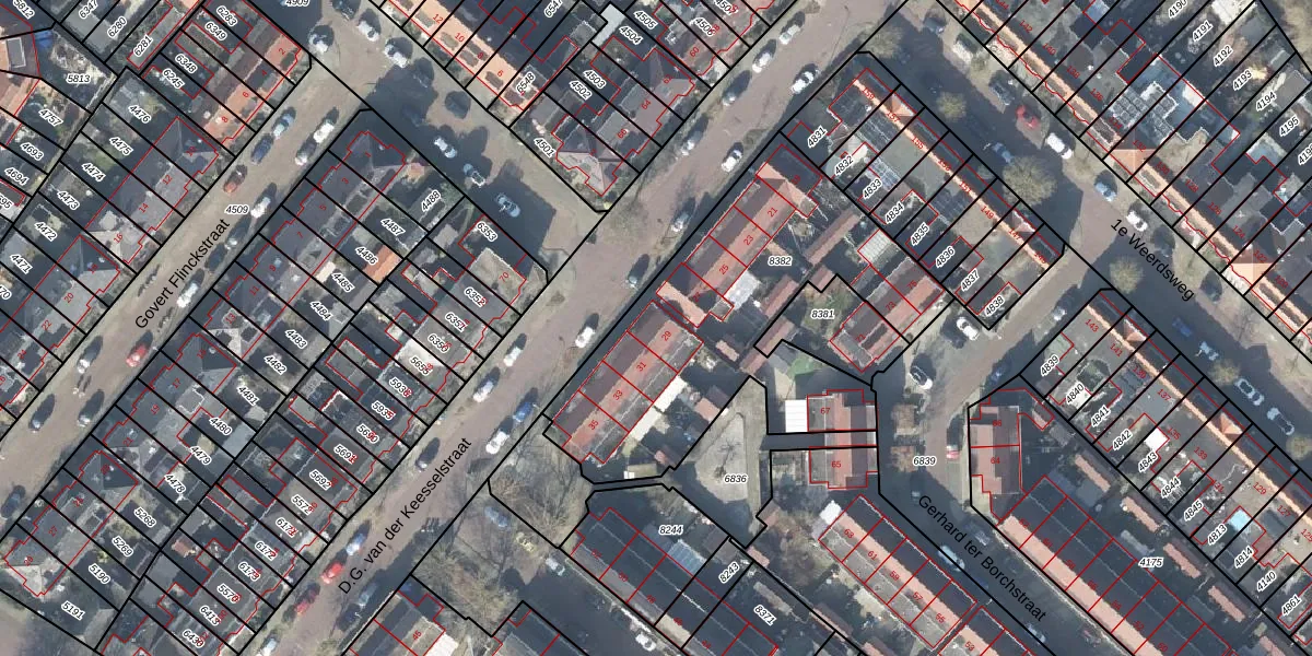 Het perceel waarop D.G. van der Keesselstraat 29 staat heeft een oppervlakte van 1470 m². Dit is een zeer groot perceel. De perceeloppervlakte wordt geregistreerd door het Kadaster. Gedetailleerde informatie over de maten van dit perceel kunt u vinden in het rapport Kadastrale kaart met maatvoering van D.G. van der Keesselstraat 29.