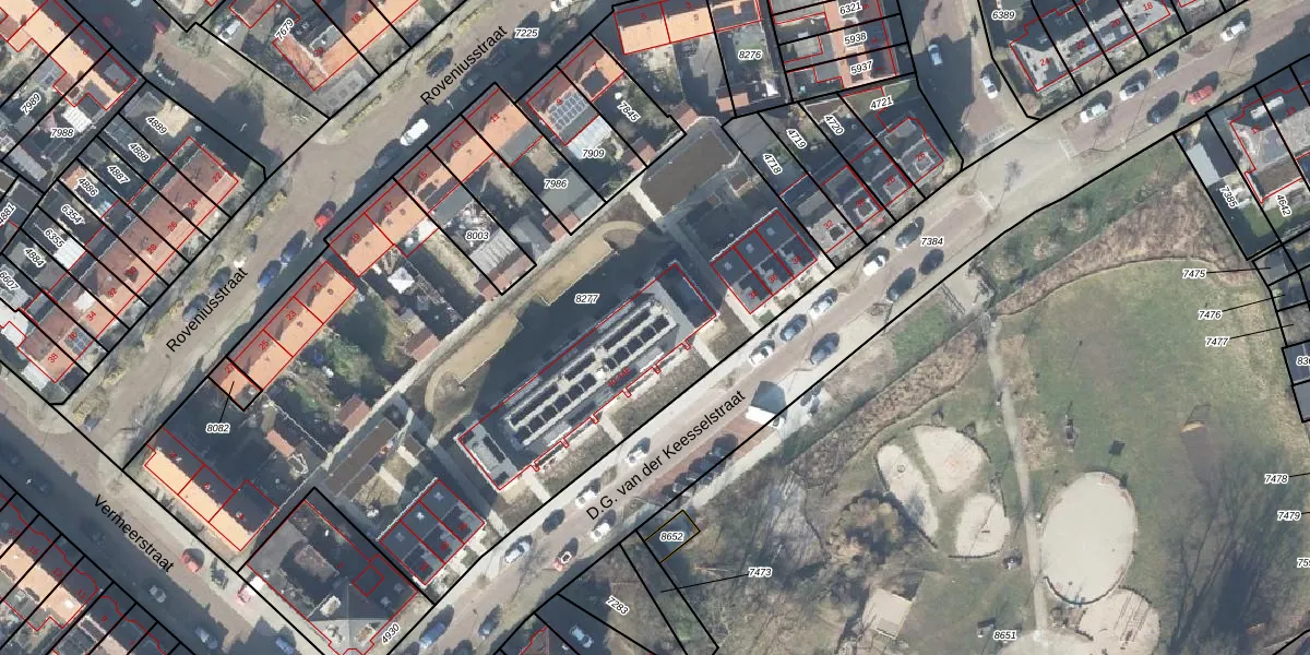 Het perceel waarop D.G. van der Keesselstraat 40-C staat heeft een oppervlakte van 4166 m². Dit is een zeer groot perceel. De perceeloppervlakte wordt geregistreerd door het Kadaster. Gedetailleerde informatie over de maten van dit perceel kunt u vinden in het rapport Kadastrale kaart met maatvoering van D.G. van der Keesselstraat 40-C.