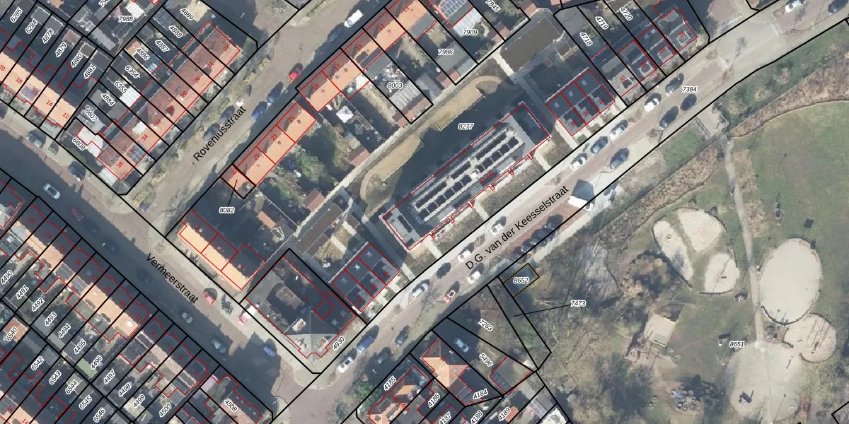 Het perceel waarop D.G. van der Keesselstraat 44-B staat heeft een oppervlakte van 4166 m². Dit is een zeer groot perceel. De perceeloppervlakte wordt geregistreerd door het Kadaster. Gedetailleerde informatie over de maten van dit perceel kunt u vinden in het rapport Kadastrale kaart met maatvoering van D.G. van der Keesselstraat 44-B.