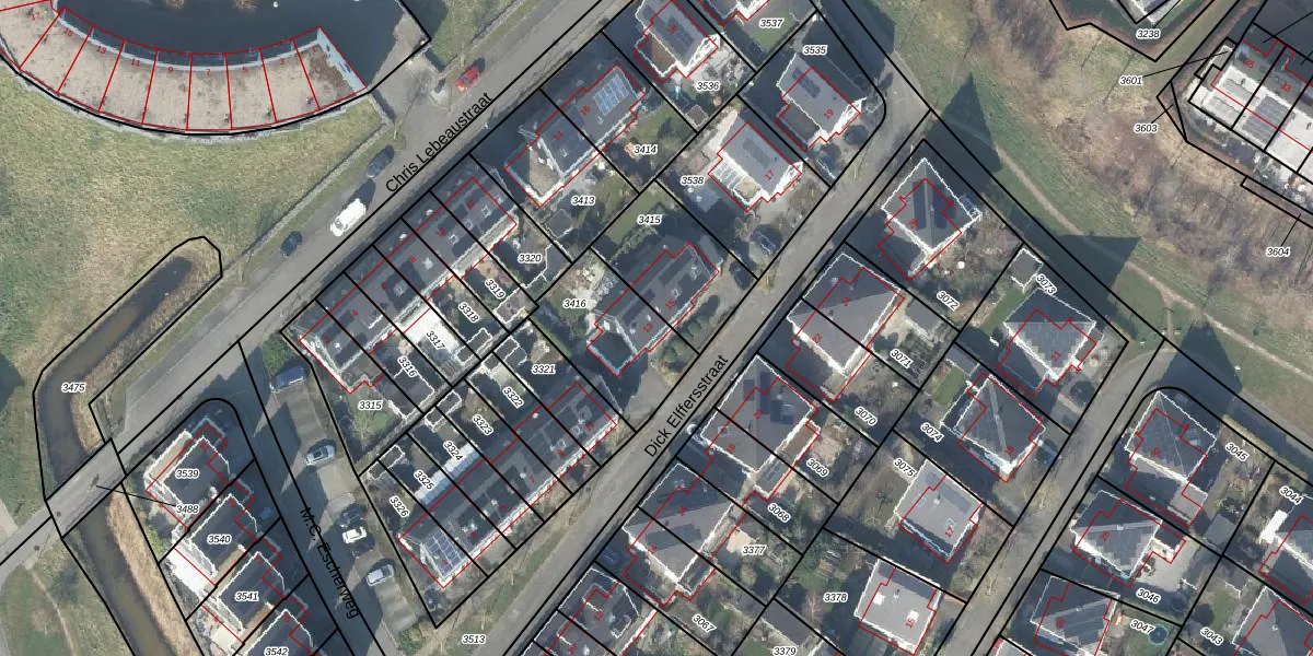 Het perceel waarop Dick Elffersstraat 13 staat heeft een oppervlakte van 355 m². Dit is een groot perceel. De perceeloppervlakte wordt geregistreerd door het Kadaster. Gedetailleerde informatie over de maten van dit perceel kunt u vinden in het rapport Kadastrale kaart met maatvoering van Dick Elffersstraat 13.