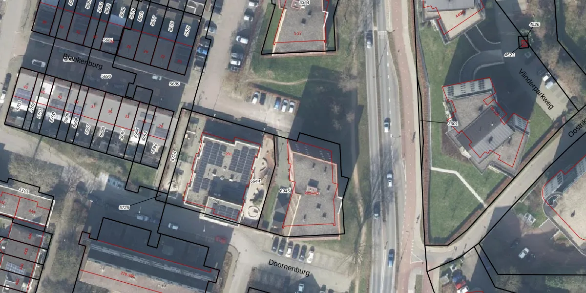 Doornenburg 203 is gelegen op kadastraal perceel DVT00L6945. Deze kadastrale aanduiding is uniek en wordt gebruikt door het Kadaster om eigendomsrechten en andere zakelijke rechten vast te leggen. Het perceel maakt onderdeel uit van de kadastrale gemeente Deventer.