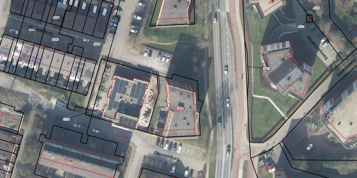 Het perceel waarop Doornenburg 213 staat heeft een oppervlakte van 840 m². Dit is een groot perceel. De perceeloppervlakte wordt geregistreerd door het Kadaster. Gedetailleerde informatie over de maten van dit perceel kunt u vinden in het rapport Kadastrale kaart met maatvoering van Doornenburg 213.