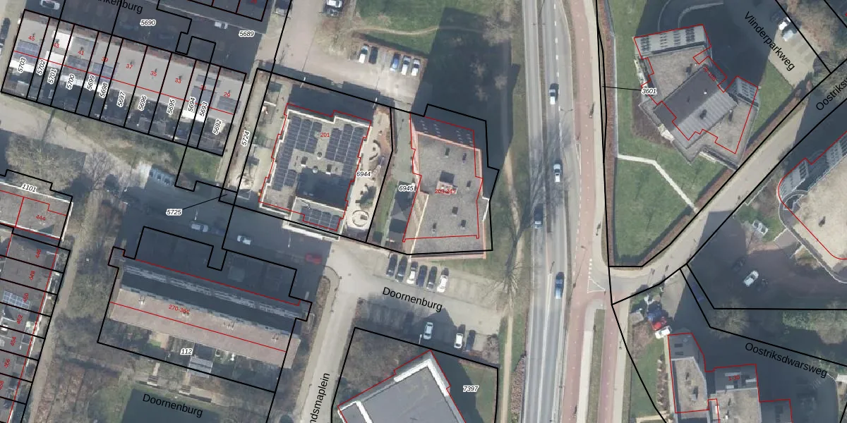 Het perceel waarop Doornenburg 231 staat heeft een oppervlakte van 840 m². Dit is een groot perceel. De perceeloppervlakte wordt geregistreerd door het Kadaster. Gedetailleerde informatie over de maten van dit perceel kunt u vinden in het rapport Kadastrale kaart met maatvoering van Doornenburg 231.